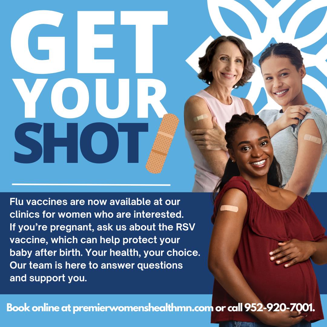 Fall is just around the corner and with it comes flu season. Flu vaccines are now available at our clinics for women who are interested. If you're pregnant, ask us about the RSV vaccine, which can help protect your baby after birth. Your health, your choice.