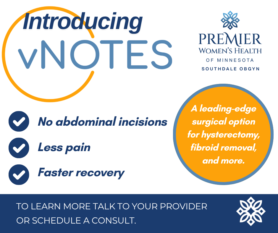 Did you know that we are one of the few OBGYN clinics in the Twin Cities offering vNotes, a leading-edge surgical option for hysterectomy, fibroid removal, and more. Benefits include: